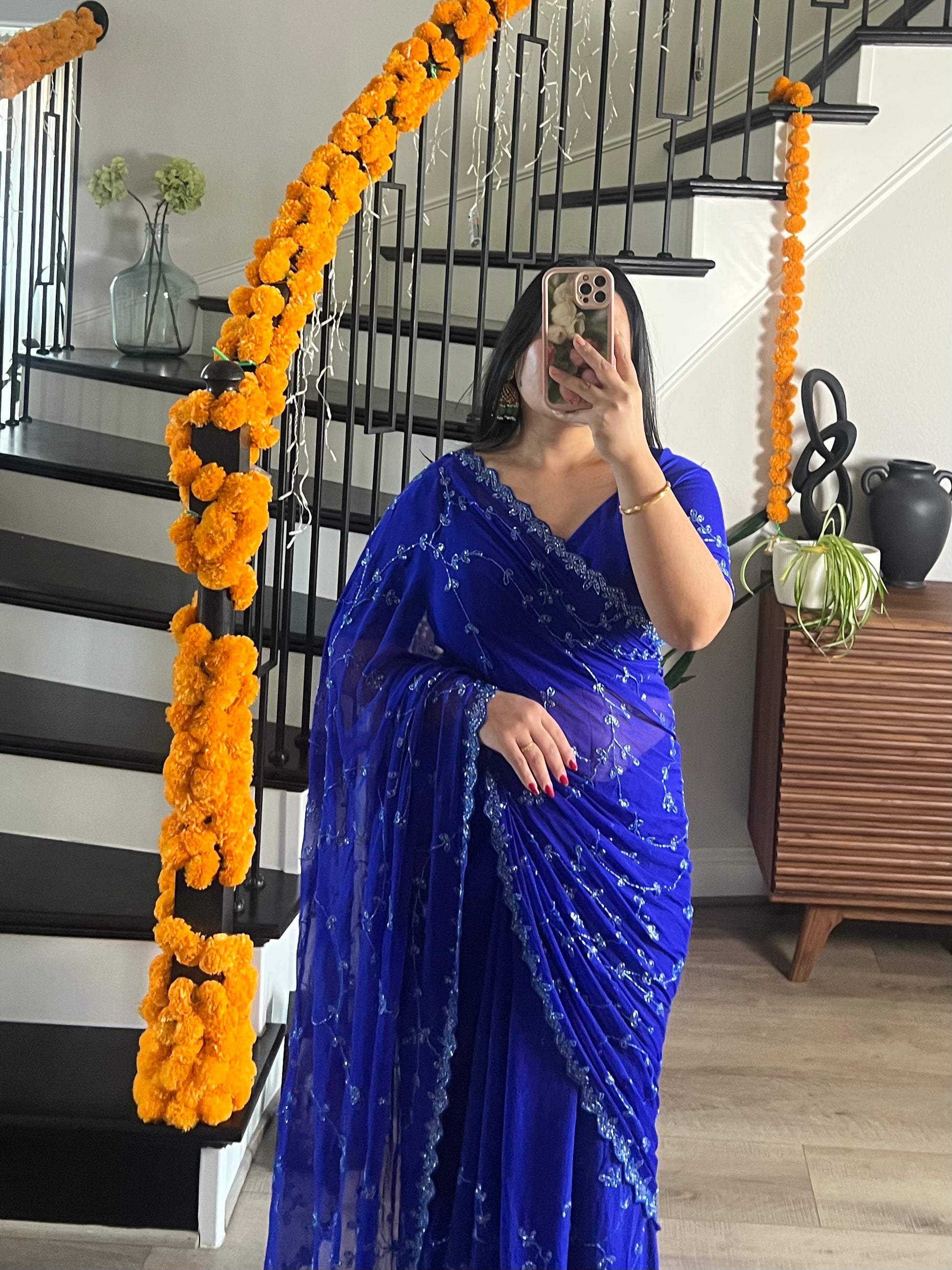 Make a striking statement with this exquisite pure chiffon crafted from lightweight and flowing chiffon, it drapes beautifully, offering both comfort and grace. Perfect for festive occasions, elegant gatherings, or making a memorable impression. Comes with a matching blouse piece, completing this captivating ensemble.