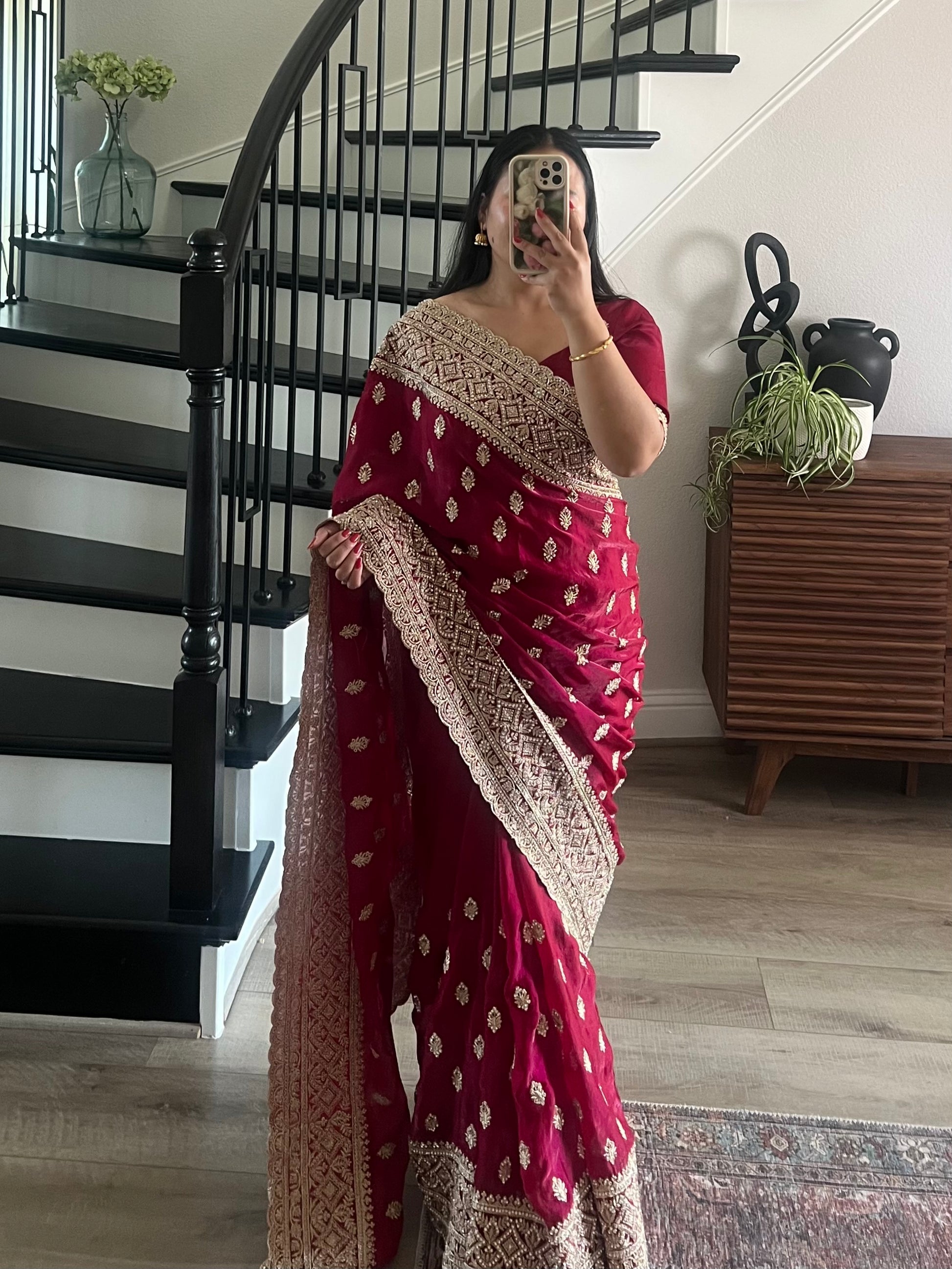 Make a striking statement with this exquisite rajasthani silk saree crafted from lightweight and flowing silk, it drapes beautifully, offering both comfort and grace. Perfect for festive occasions, elegant gatherings, or making a memorable impression. Comes with a matching blouse piece, completing this captivating ensemble.